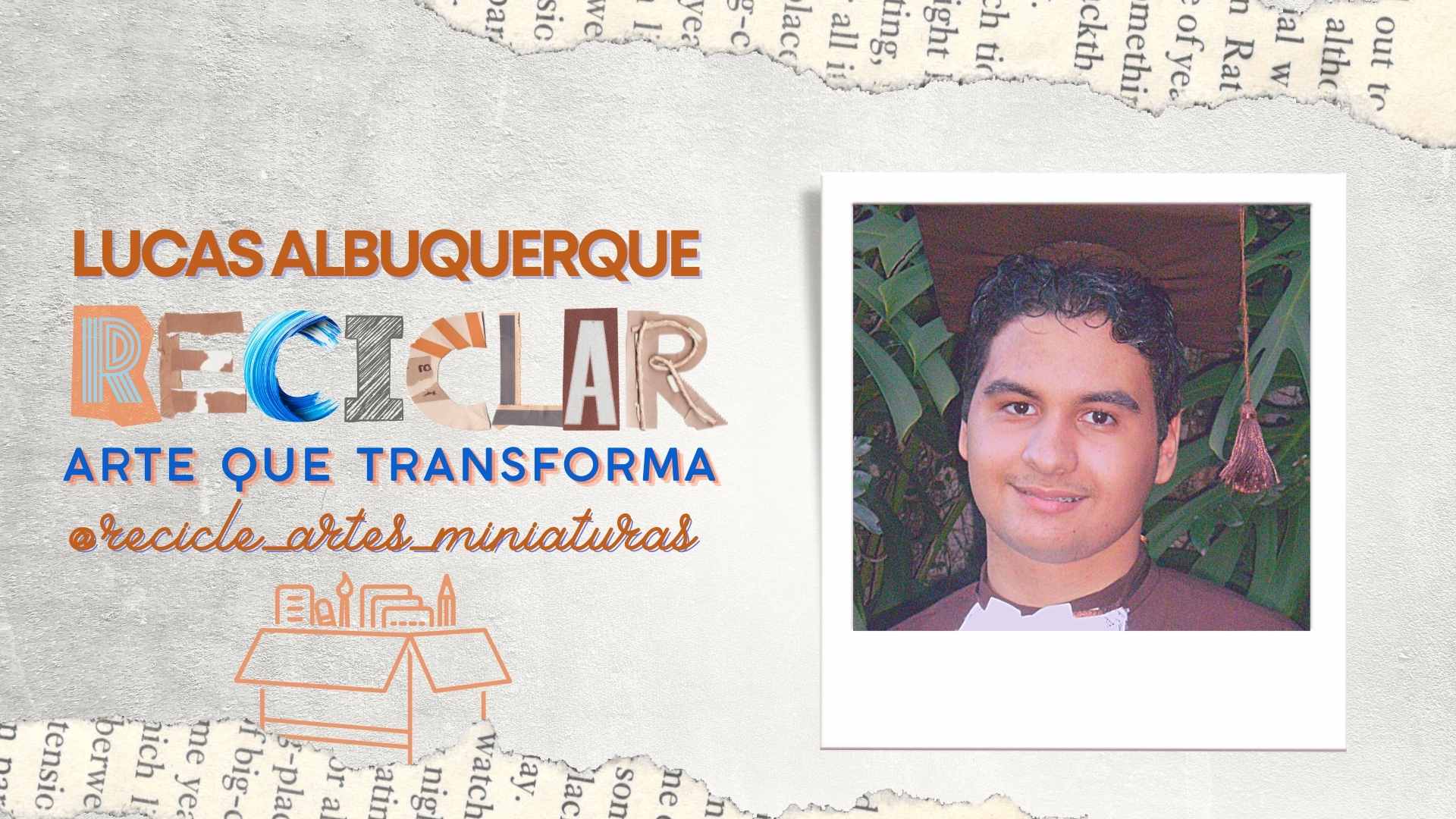 Eu me chamo Lucas Albuquerque e tenho 19 anos, nasci na cidade do Rio de Janeiro, mas vivo em Itaguaí, uma cidade vizinha. A reciclagem entrou na minha vida por acaso, mas passou a ser algo muito importante para mim. Hoje eu encaro esse trabalho, com material reciclável, de uma forma muito séria, tanto que criei um perfil no Instagram,